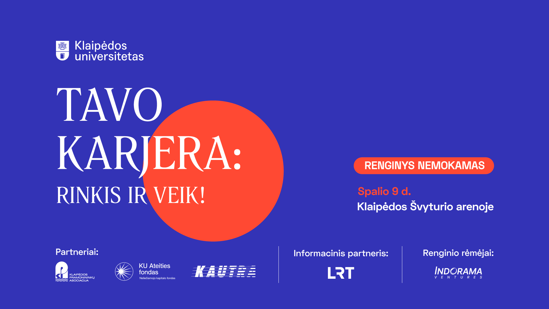 Spalio 9-ąją Klaipėdos „Švyturio“ arena taps Vakarų Lietuvos ateities forumu. Čia vyks Klaipėdos universiteto organizuojamas renginys „TAVO KARJERA: RINKIS IR VEIK“ – didžiausia regiono karjeros mugė, suburianti moksleivius, studentus, darbo ieškančius žmones, verslo lyderius ir švietimo bendruomenę.